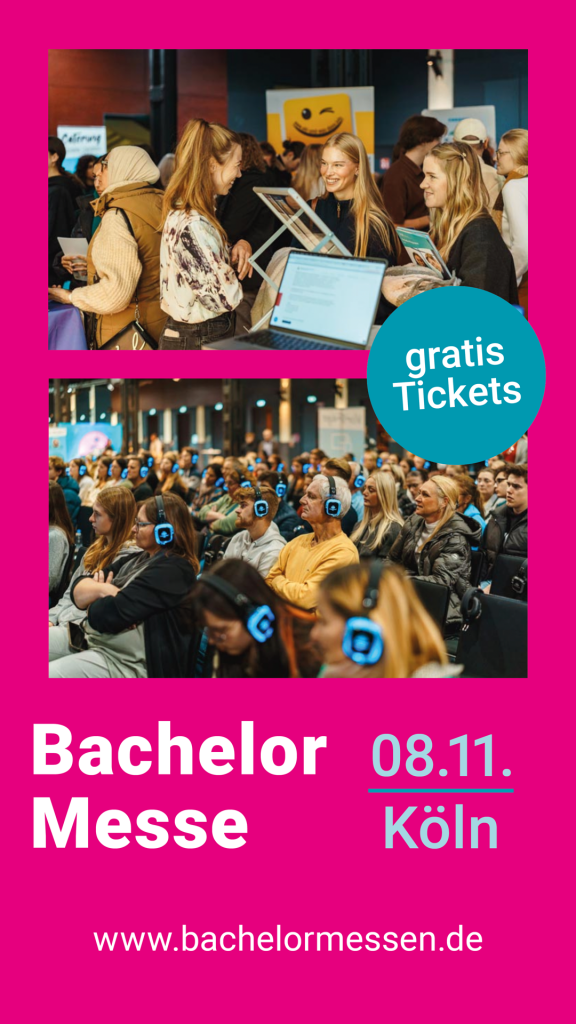 Bereits besuchte Messen in 2025: ABI Zukunft Hildesheim, ABI Zukunft Neustadt am Rübenberge, ABI Zukunft Heilbronn, ABI Zukunft Leipzig, ABI Zukunft Berlin (IHK), BACHELOR AND MORE Münster, ABI Zukunft Hamburg, ABI Zukunft Hildesheim, BACHELOR AND MORE Düsseldorf, ABI Zukunft Regensburg. ABI Zukunft Frankfurt, Pforzheim, Osnabrück, Essen und Hannover. Als weitere Messestandorte kommen in Diesem Jahr noch hinzu: Köln. Würzburg und Berlin.